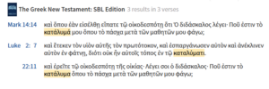 Now, let’s talk about this place where Joseph and Mary asked for a room. If you look next to the word “Inn” in your Bible, there is probably a footnote. If you look down at the footnote, what does it say? Mine says “or guest room”. The word that gets translated as “Inn” is the Greek word “katalyma”. It appears 3 times in the New Testament – here in Luke 2:7, and also in Luke 22:11 and Mark 14:14.