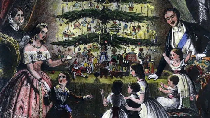 So, how did the tradition spread past Germany? The British royal family popularized it in the mid-1840s when Prince Albert (who had German ancestors) imported several spruce trees from Germany and put them in the palace. By this time, putting a tree in your house wasn’t uncommon, but what happened is that periodicals started publishing drawings of the Royal family standing around their Christmas tree year after year. And, because the royal family was like a bunch of celebrities, the British people followed suit.